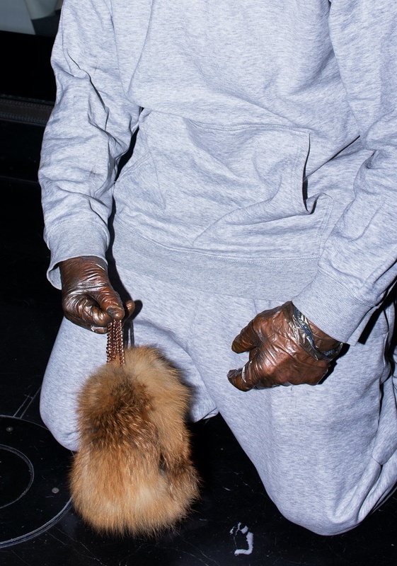 Smooth, shiny and seamless, Just Desire is like the finishing touches on the most inspiring consumer goods of our time. Like a high-end phone, a luxury perfume or the fastest car in the world - the Tesla Roadster - the performance offers itself as the object of our desire. The space is littered with golden chains from which hang multiple shiny garments: the dead carcasses of a boutique where an intimate portrait unravels in a turmoil of consumption of objects, others and self.